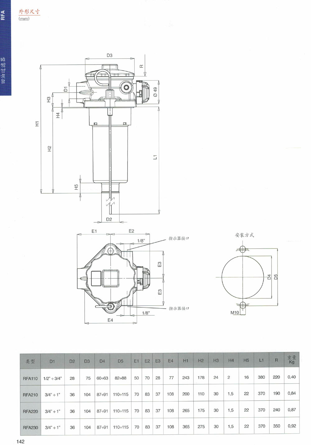 索菲瑪內置呼吸器油箱頂置回油過濾器RFA系列