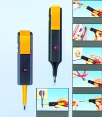 • 感應測電原理,無須接觸導線,靠近絕緣層即可判斷導線帶交流電、電線斷頭或開關故障。